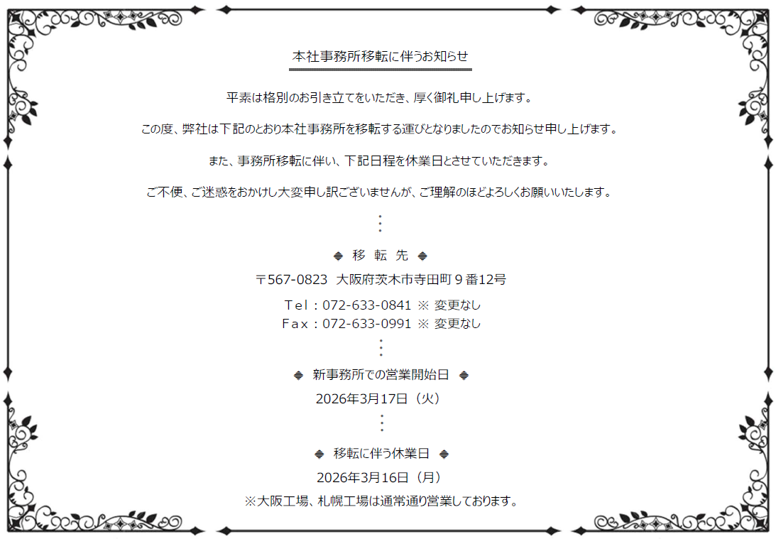 本社事務所移転に伴うお知らせ