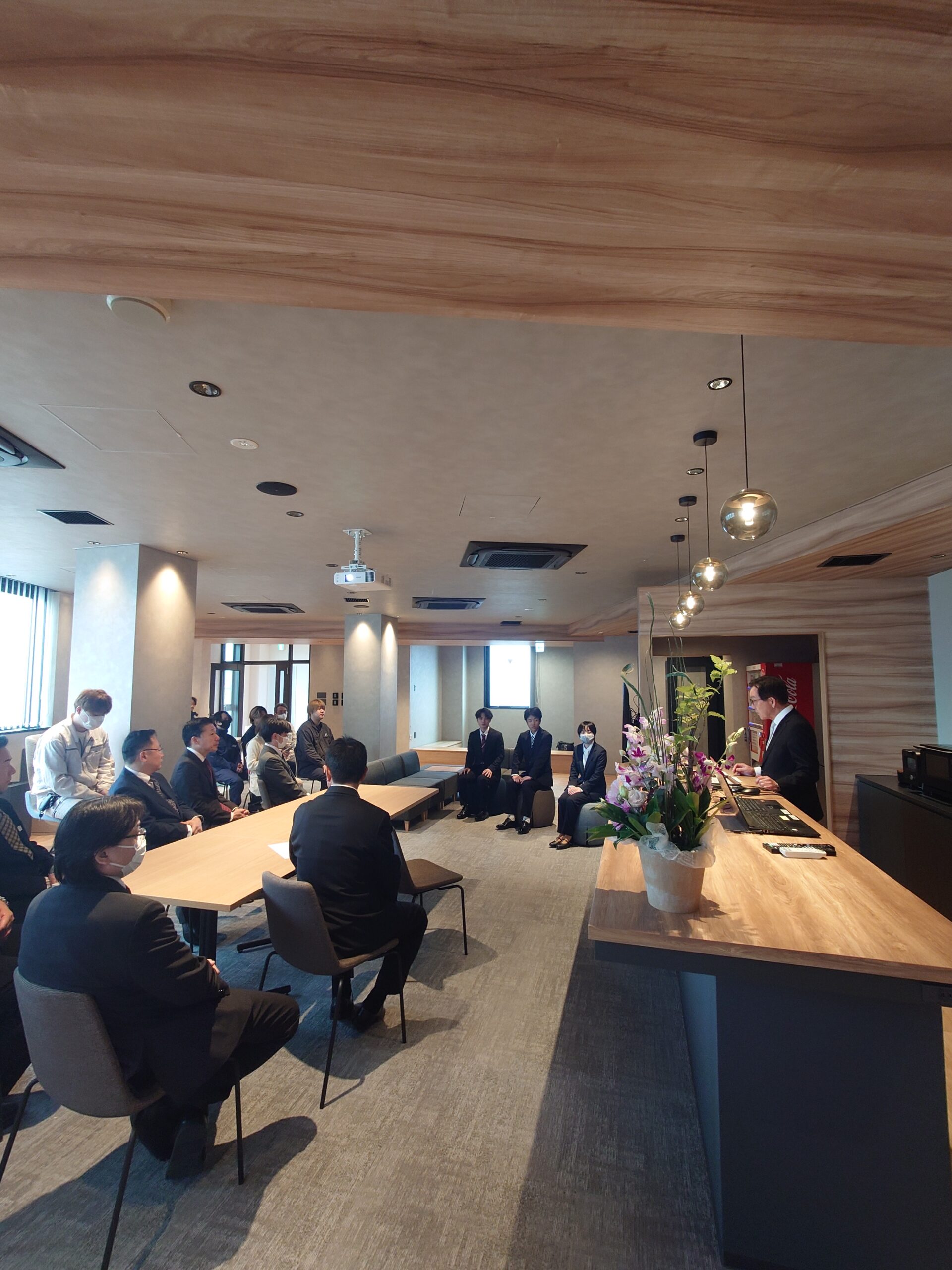 移転後の新しいオフィスでの入社式。